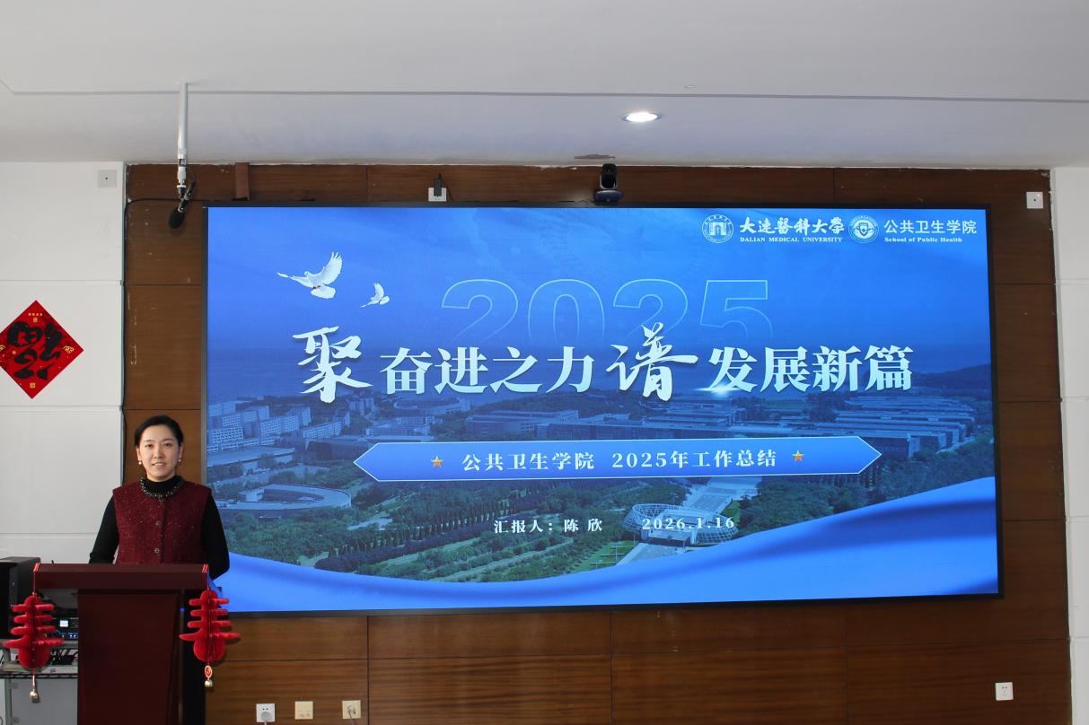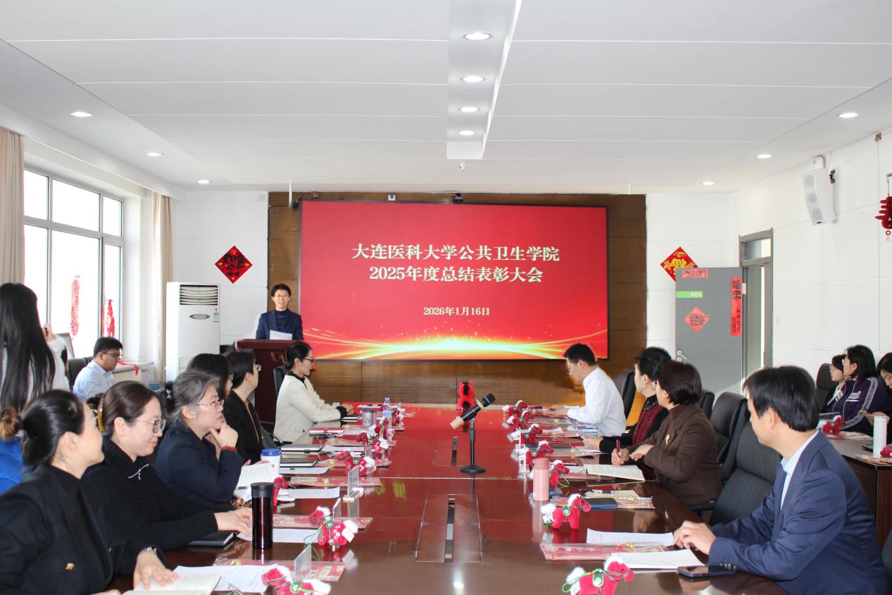 1月16日下午,公共卫生学院举行2025年度总结表彰大会。党委常委、副校长杨晓丽出席大会,学院领导班子、全体教职工参加大会。大会由学院党总支书记兼副院长金新主持。
