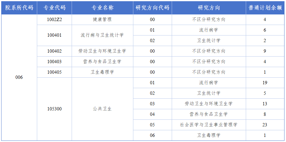 公共卫生学院2026年硕士研究生招生第一批调剂计划余额信息